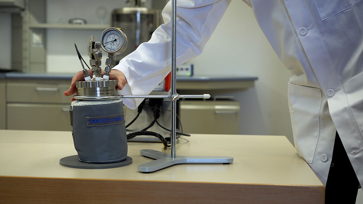 新開発の加熱ジャケットにより、ミニクレーブの加熱が容易に行えます。ミニクレーブを加熱ジャケット内に設置し、スタンドで しっかりと固定するだけで加熱できます。この加熱ソリューションには制御ユニットが付属しており、迅速かつ簡単な試運転と、リアクターの信頼性の高い温度制御を実現します。