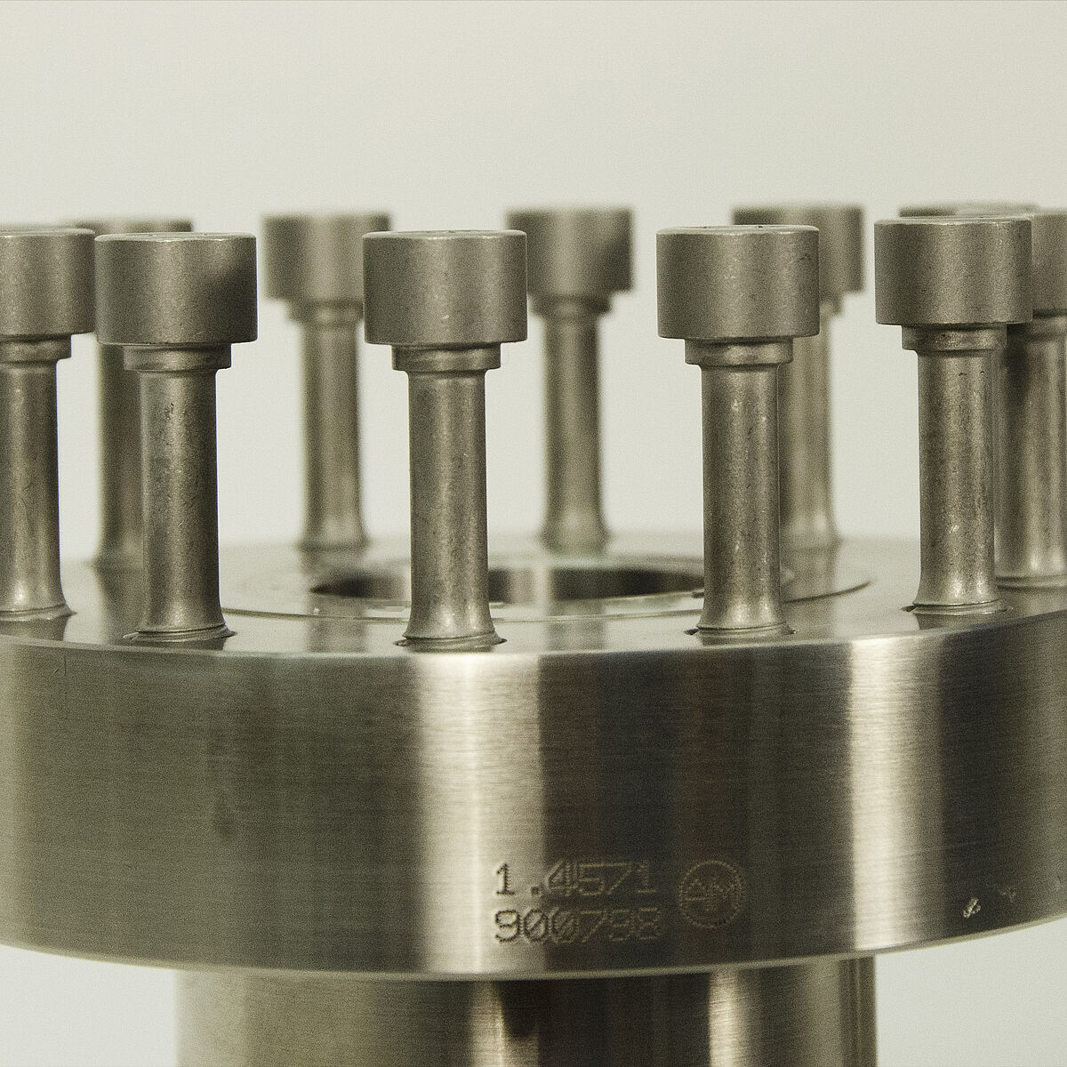 - 6 つの開口部があるカバー プレート (標準設定: マノメーター、Pt100、破裂ディスク、バルブ 2 個、予備の開口部 1 個)