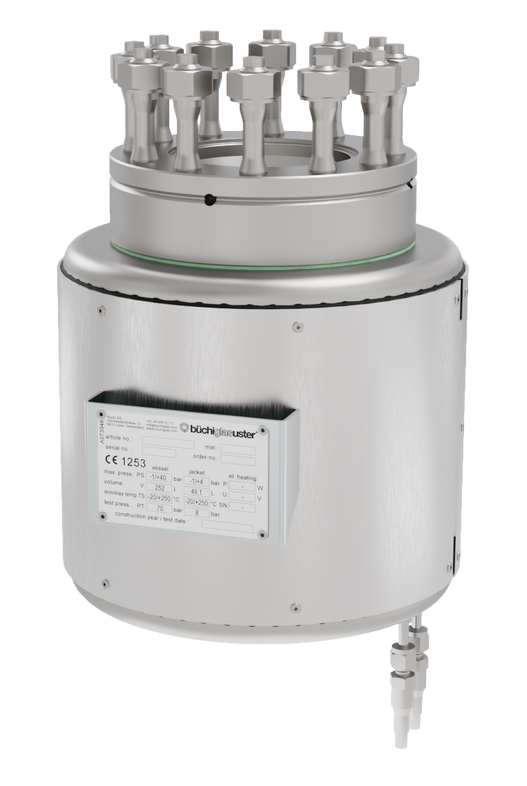 | この多目的圧力反応器システムは、ガラス製およびステンレス製の圧力容器を交換できるように設計されています。安全機能により、加圧下での安全な反応が保証されます。 ガラス製反応器は高い耐酸性を備え、視覚的なプロセス制御と監視が可能です。また、サイトグラス付きのスチール製圧力容器を使用することで、高圧下でも同様のことが可能です。低トルクから高トルクまで様々な磁気駆動装置により、低粘度から高粘度のプロセス媒体の効率的な混合・撹拌と優れた伝熱性を保証されます。 ポリクレーブシステムはモジュール式のため、いつでも新しい作業に合わせて変更やアップグレードが可能です。 ファーストアクションクローザー、容器昇降機能より、重い金属製の圧力容器も容易に操作できます。液体、固体、ガスなどの供給用アクセサリに加え、触媒バスケットなど、幅広いアクセサリをご用意しております。お客様のニーズに最適な構成については、お気軽にお問い合わせください。 |