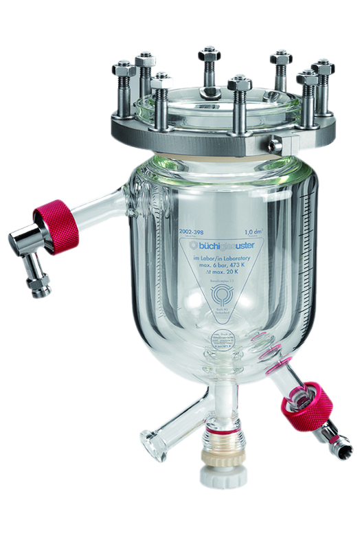 - 容器の種類に応じて適切な撹拌軸、撹拌機、バッフル、Pt-100、底部バルブを備えたガラス、スチール/ハステロイ®製の圧力容器