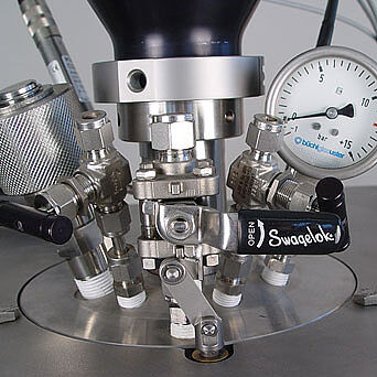 - 破裂板、圧力計、2つのバルブを備えたSwagelok継手