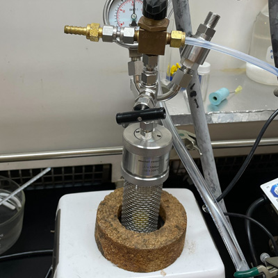 ガラス製の圧力容器が利用可能だったことは特筆すべき点でした。これにより、システムを大気開放することなく重合反応を視覚的にモニタリングすることができました。この装置は標準的な実験室用ホットプレートやドラフトチャンバーと互換性があるため、シームレスな統合が可能で、10ml、35ml、100mlの容器は反応のスケールアップに非常に役立ちました。