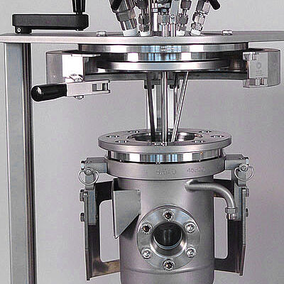 VERSOCLAVE®撹拌式ラボ用加圧反応器(ATEXバージョン)は、柔軟性の向上、人間工学に基づいた容器の取り扱い、および迅速な閉鎖を可能にするために、トロリーとリフトを装備しています。