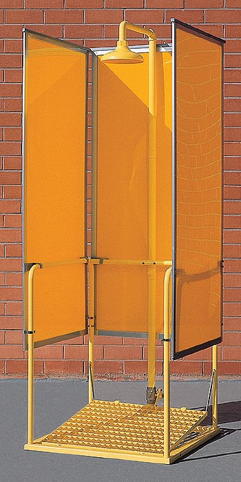 セイフティーシャワーとアイウォッシュは腐食性物質、酸、火災、放射線物質などの有害物質を希釈し洗い流すために大量の水を放水します。