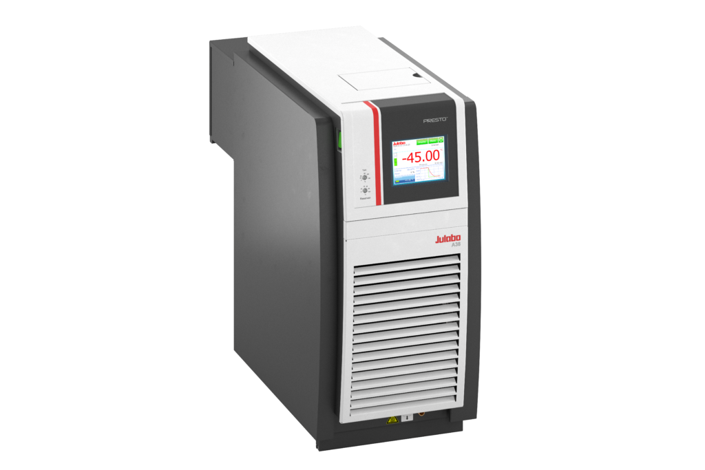 JULABOの空冷式プロセスシステムPRESTO A38は、環境に優しい自然冷媒を使用しています。高性能と非常にコンパクトな設計に加え、PRESTOシリーズのすべての利点を備え、動作温度範囲は-45℃~+250℃です。