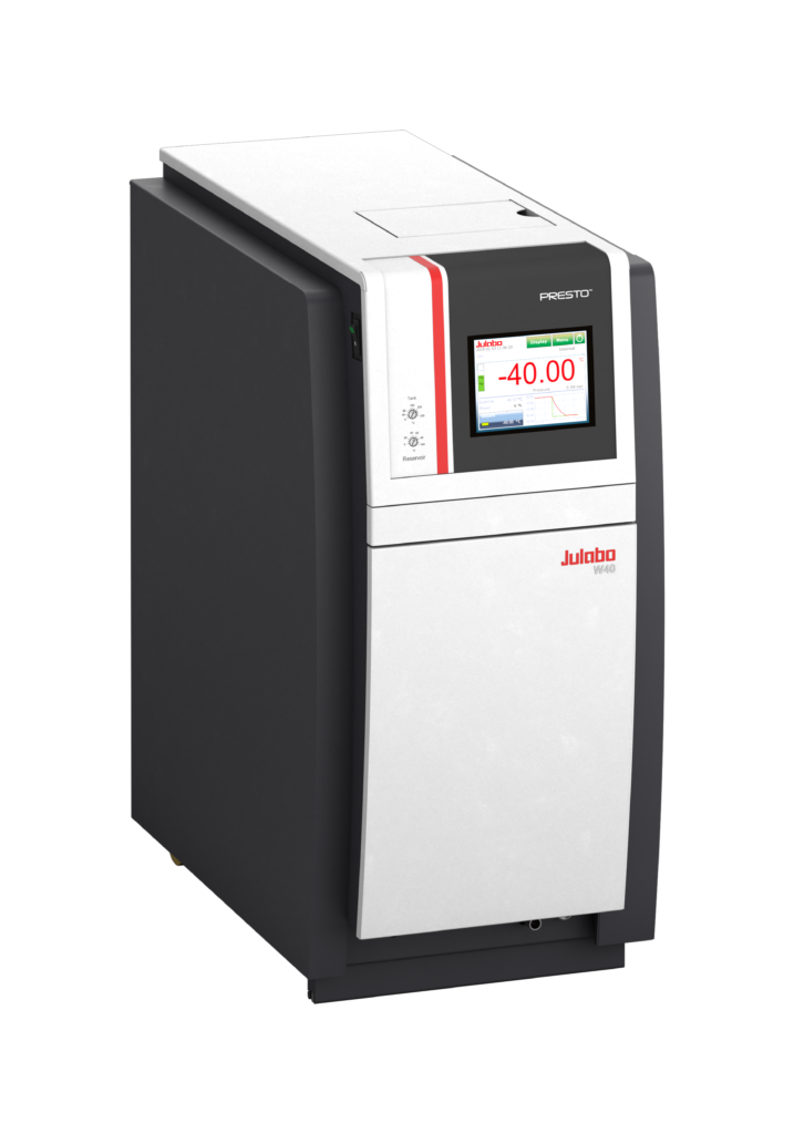 JULABOの水冷式プロセスシステムPRESTO W41は、環境に優しい自然冷媒を使用しています。高性能と非常にコンパクトな設計に加え、PRESTOシリーズのすべての利点を備え、動作温度範囲は-45℃~+250℃です。
