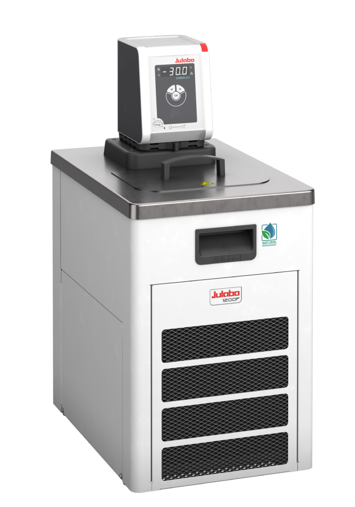 動作温度範囲が -40 ~ +150 °C の冷蔵/加熱サーキュレーター CORIO CD-1200F は、コンパクトな設計にもかかわらず、20 °C で 1.25 kW という優れた冷却能力を発揮します。