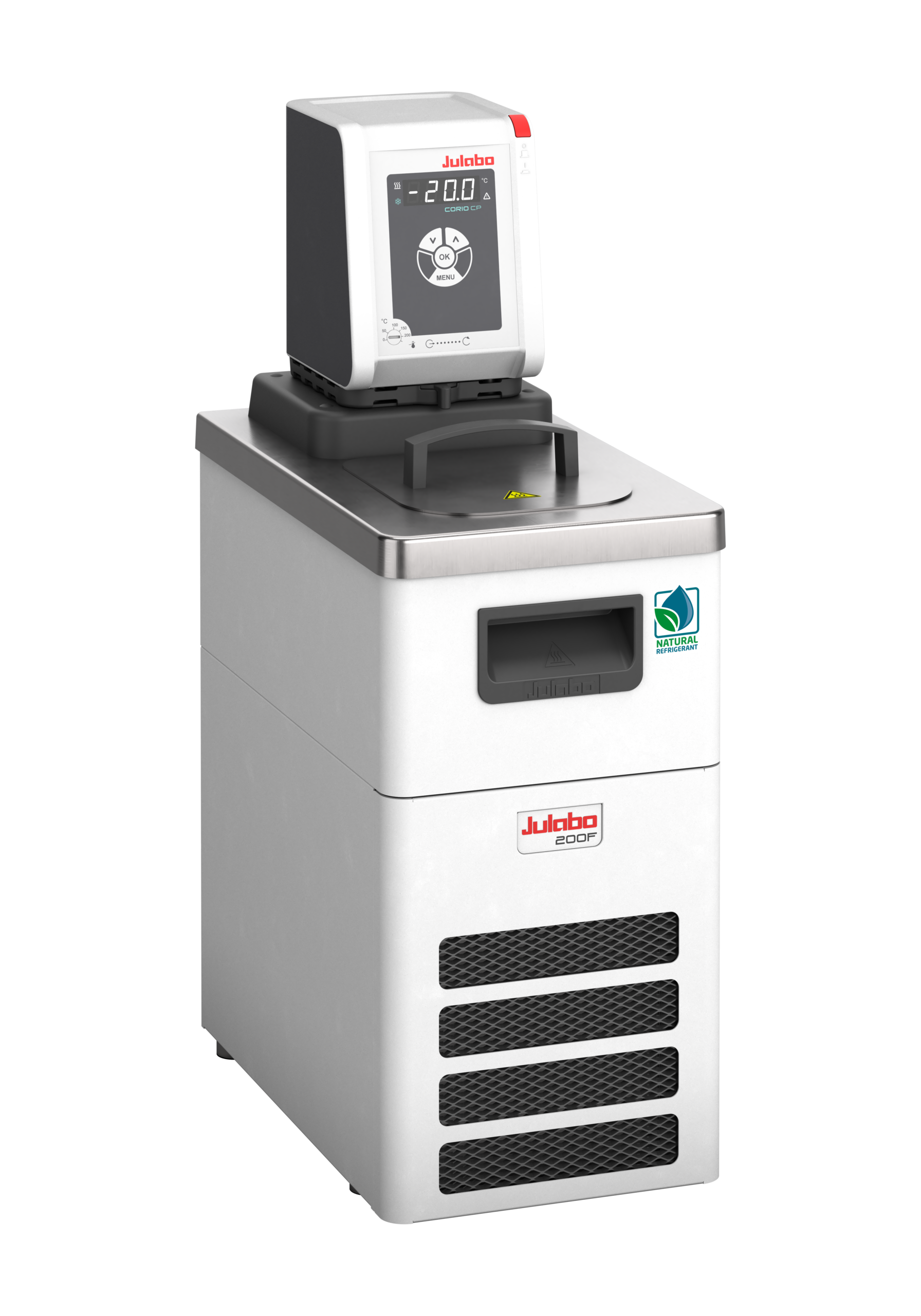 動作温度範囲が-20~+200℃の冷蔵/加熱サーキュレーターCORIO CP-200Fは、コンパクトな設計ながら、20℃で0.2kWという優れた冷却能力を発揮します。バスタンクと冷却コイルの最適化された設計により、バス内はより広々とし、操作性も向上しています。通気口と接続部は前面と背面に配置されているため、複数のユニットを並べて設置でき、省スペース化を実現します。